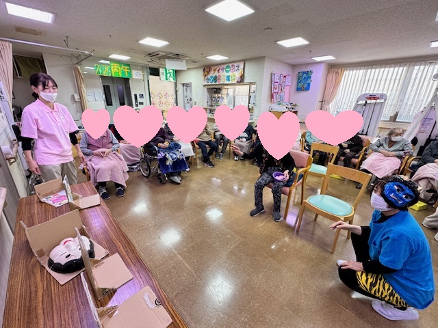 デイサービス帝塚山にて皆様のこの一年の無病息災を願い、豆まきゲームを開催させていただきました。