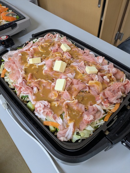 鶴ヶ丘デイサービスにて、「鮭と豚肉のちゃんちゃん焼き」を皆様に召し上がって頂きました。